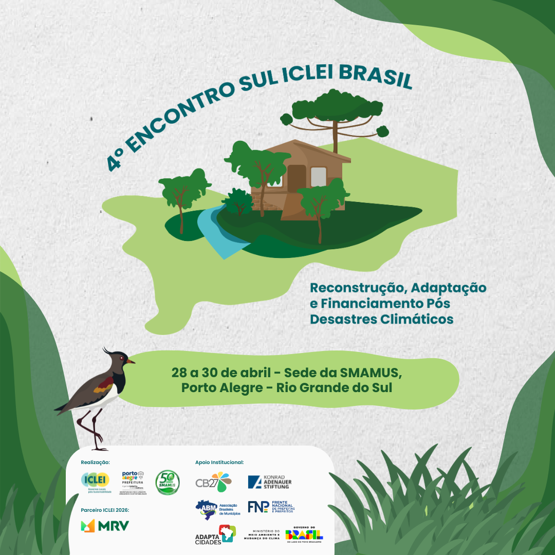 Reconstrução, adaptação e financiamento pós-desastres climáticos são os eixos que orientam o 4º Encontro Sul do ICLEI Brasil, que será realizado em Porto Alegre entre os dias 28 e 30 de abril de 2026.