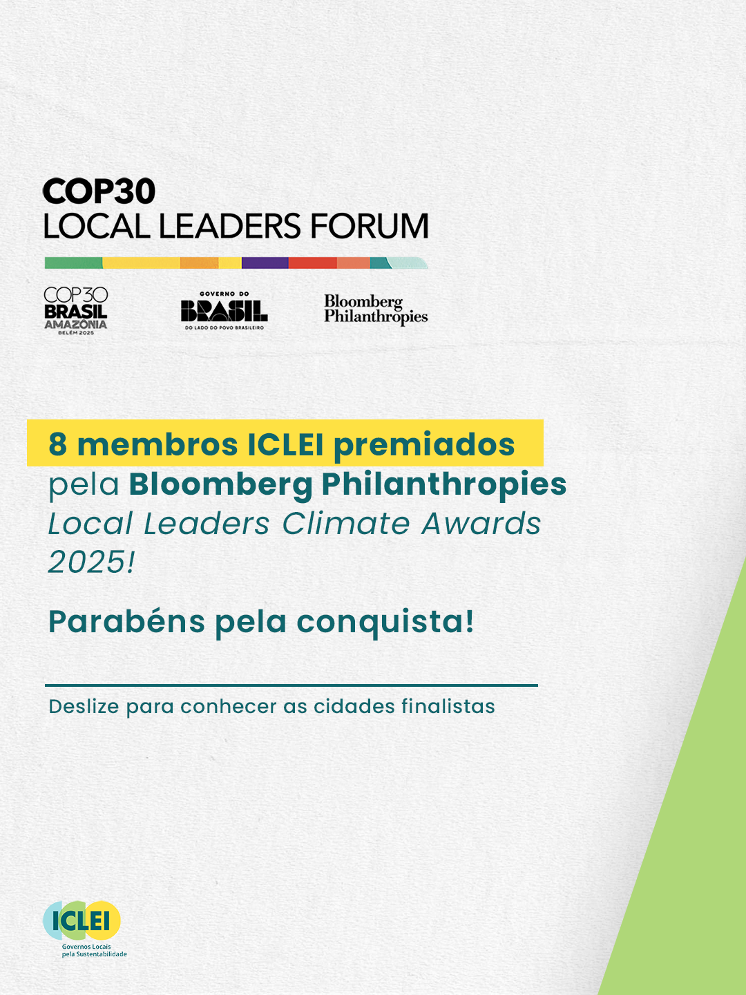 De iniciativas de lixo zero a emissões líquidas zero, os membros do ICLEI estão definindo o ritmo da ambição climática, transformando ideias inovadoras em resultados mensuráveis. Anunciados na noite de ontem, 4 de novembro, no Rio de Janeiro, Brasil, durante o Fórum de Líderes Locais da COP30, os Prêmios Bloomberg Philanthropies Local Leaders 2025 celebram as iniciativas climáticas mais ousadas, impactantes e centradas nas pessoas, lideradas por cidades, estados e regiões. Oito dos 12 vencedores são membros do ICLEI.